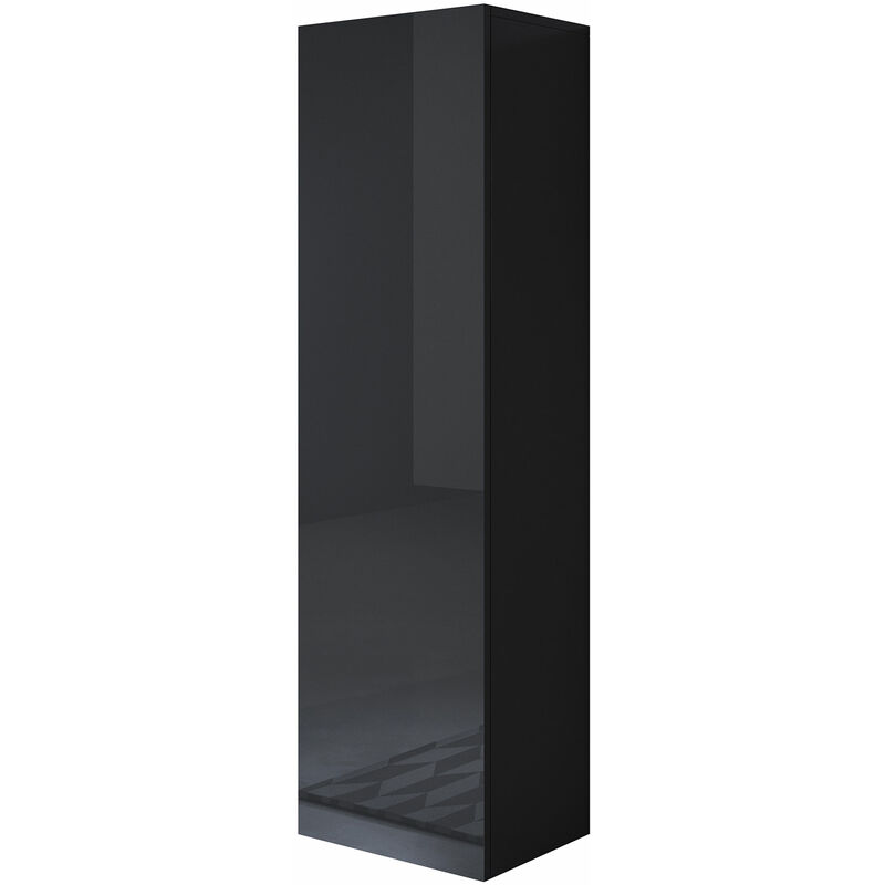Armoire murale 1 porte Meuble de Rangement 40x126x29cm 3 compartiments Modèle Nora V1 Noir Finition brillante
