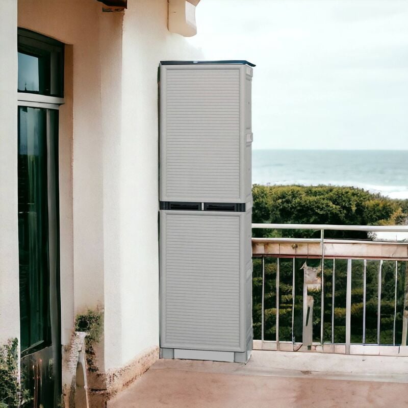 Dmora – Armoire de jardin 1 porte 3 étagères en polypropylène – Dimensions 50x39h172 cm – Résistante aux intempéries et UV – 100% recyclable