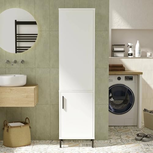 DMORA - Armoire Polyvalente Clearwater, 1 Porte, Étagère à Chaussures Verticale, 37x37h180 cm, Blanc
