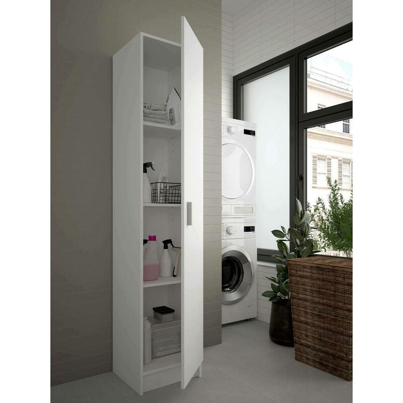 Pegane – Armoire de rangement 1 porte blanc – Dimensions 35x32x170 cm – Panneaux de particules mélaminés – Fabrication espagnole