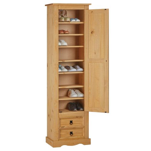 Armoire TEQUILA avec 1 porte et 2 tiroirs, en pin massif finition teintée et cirée bois 53 x 190 x 38 cm