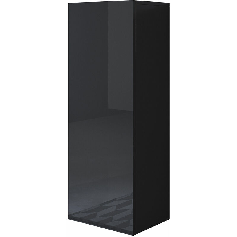 Armoire murale 1 porte Meuble de Rangement suspendu 40x126x29cm 3 compartiments Modèle Luke V1 Noir Finition brillante