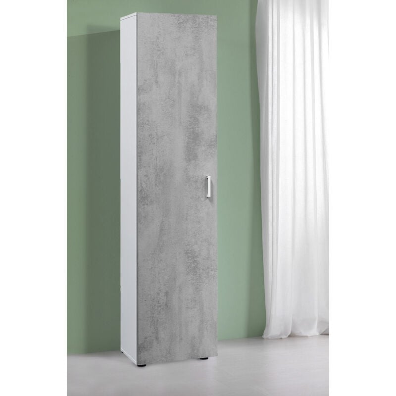 Armoire à usages multiples Reno, Armoire auxiliaire avec 1 porte et 3 étagères, Armoire moderne, Meuble colonne haute, cm 41x37h182, Ciment et Blanc,