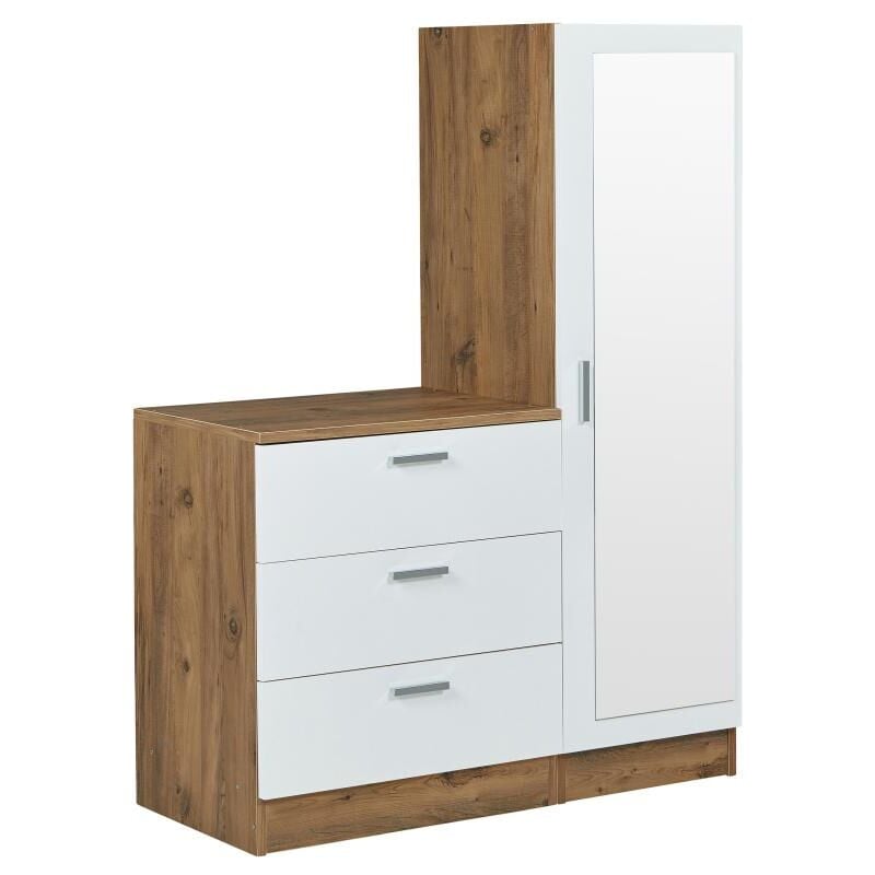 Les Tendances – Armoire 1 porte miroir et commode 3 tiroirs – Bois mélaminé blanc et noyer – Dimensions L 100 x H 140 x P 47 cm – Fabrication Europe
