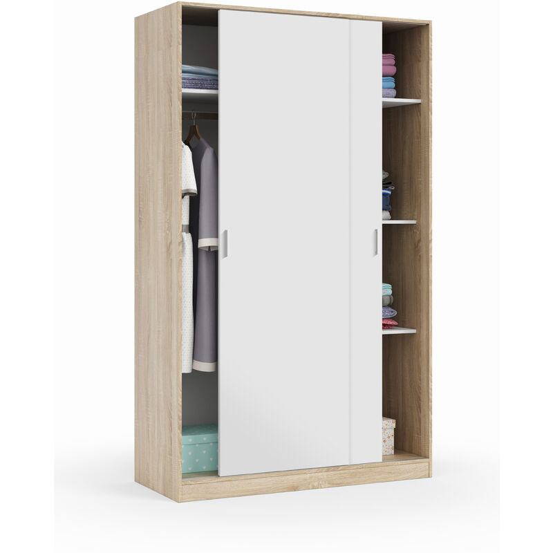 Armoire à portes coulissantes coloris blanc brillant - longueur 120 x profondeur 50 x hauteur 204 cm