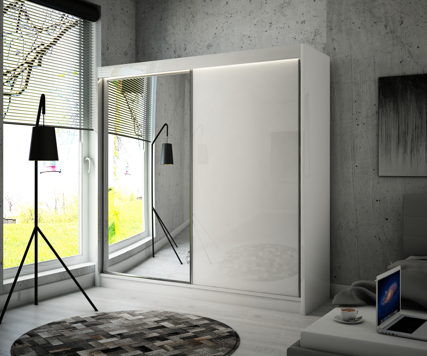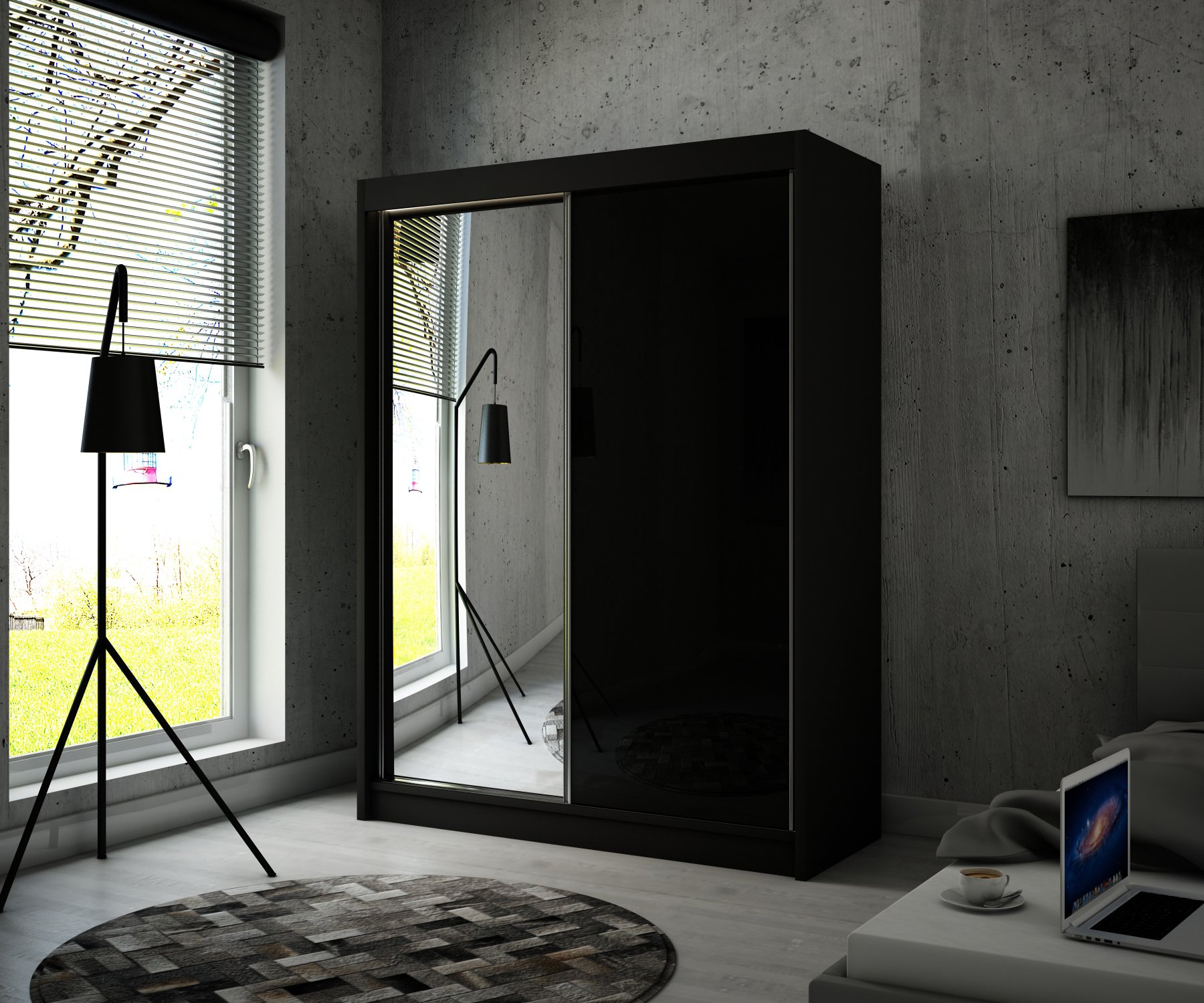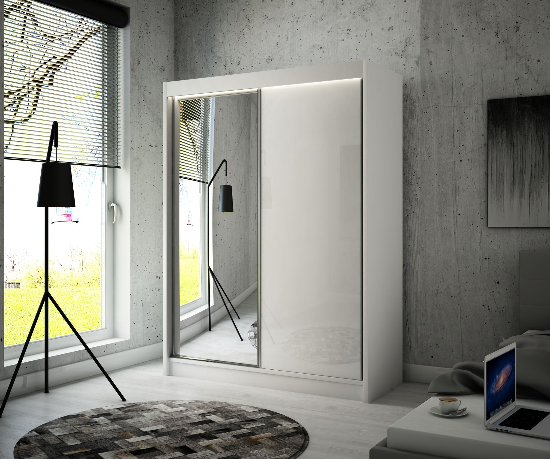 Armoire de chambre 1 porte bois clair et marron laqué 1 porte miroir voka - 3 tailles-largeur 120 cm
