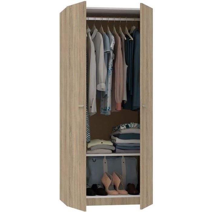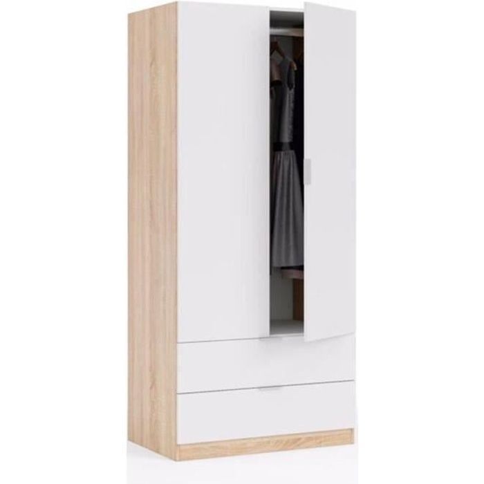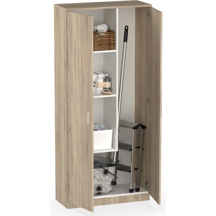 Armoire Meuble de rangement 2 portes coloris Cambrian - Hauteur 180 x Longueur 80 x Profondeur 35 cm