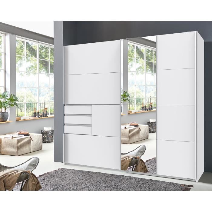 Armoire à portes coulissantes coloris blanc brillant - Longueur 180 x Profondeur 65 x Hauteur 204 cm