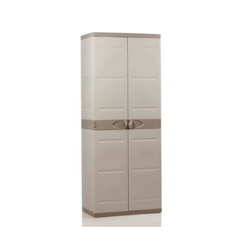 TITANIUM PLASTIKEN Armoire haute 2 portes avec étageres 70 x 44 x 176 cm Beige et Taupe Gamme TITANIUM Intérieur et Extérieur