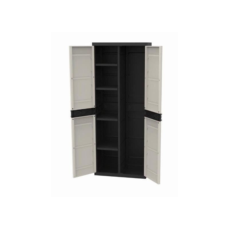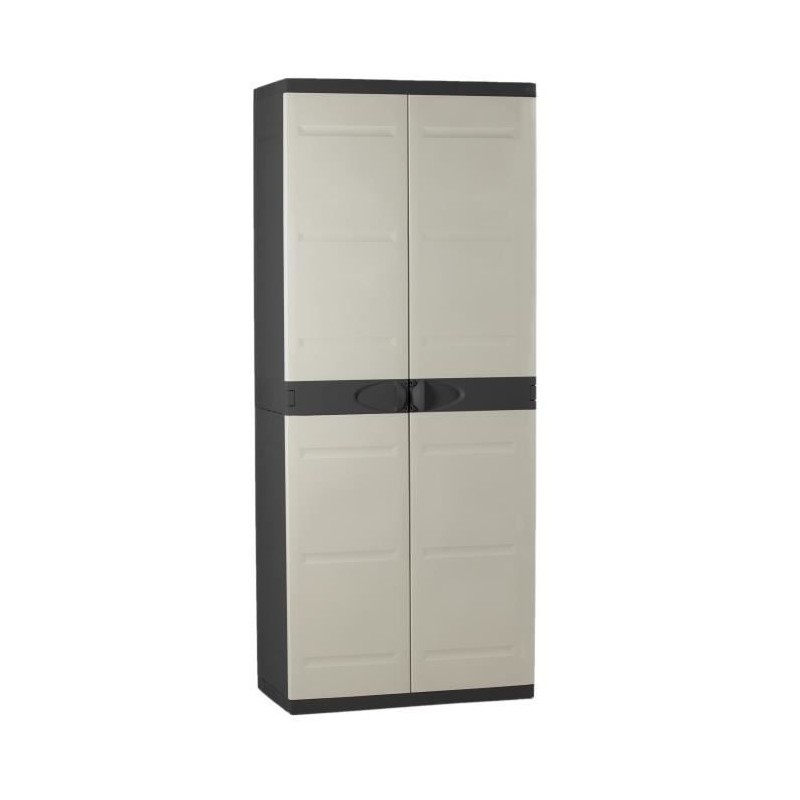 Titanium plastiken armoire haute 2 portes avec étageres - 70 x 44 x 176 cm - beige et noir - gamme titanium - intérieur et ex?