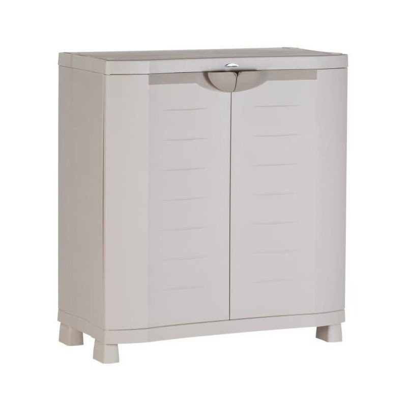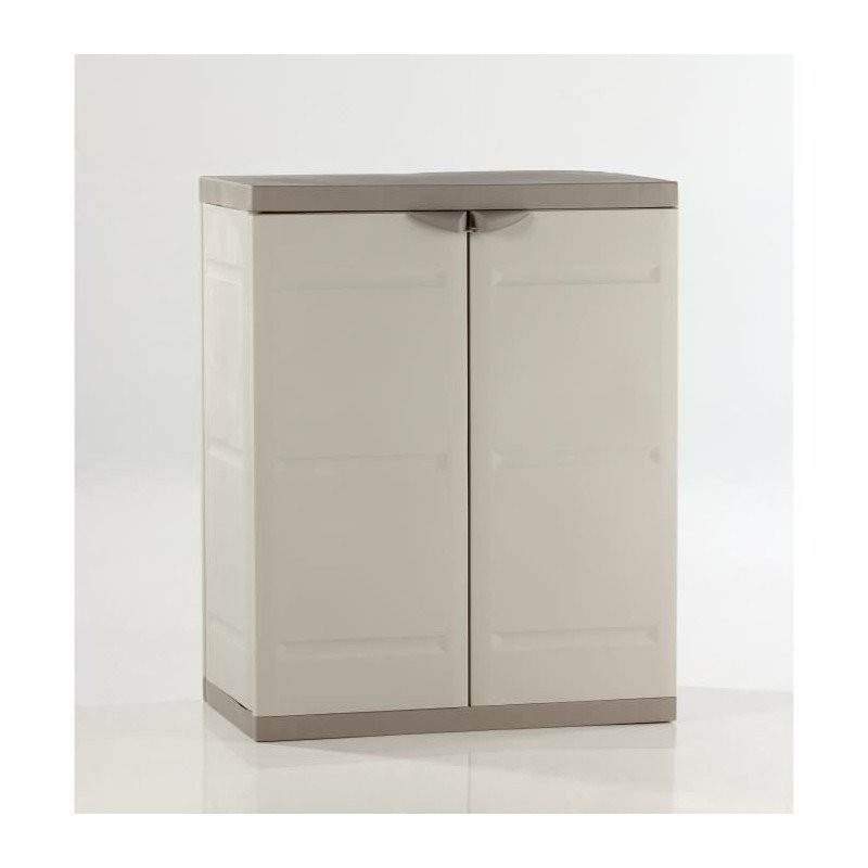 Titanium plastiken armoire basse 2 portes avec étageres l70 x p44 x h88 cm beige et noire gamme titanium intérieur/extérieur