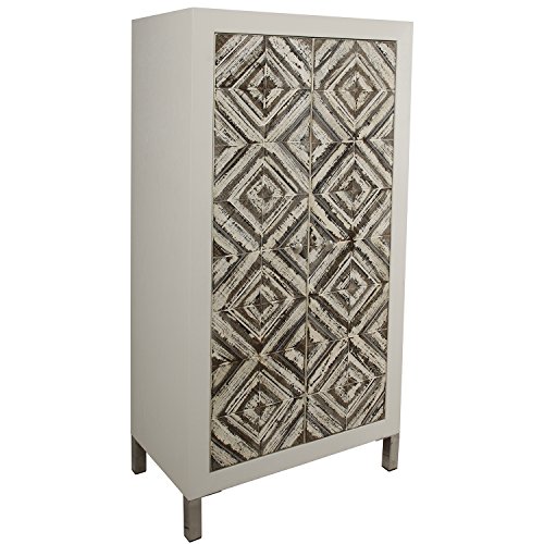 Suska-Regalos 40093 Armoire 2 Portes en Bois avec Pieds en Acier Inoxydable, Blanc et Gris, 60 x 35 x 120 cm