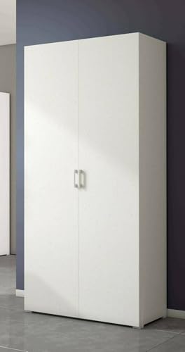 Dmora - Armoire polyvalente Alisso, Armoire linéaire avec 2 portes battantes, Armoire avec 4 étagères réglables, Étagère à chaussures moderne, 100% Made in Italy, 90x45h195 cm, Blanc