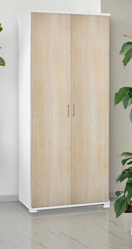 Terry - Jwood 368, Armoire à 2 portes Multifonction, Armoire à Balais Effet Bois, 4 Étagères, pour Intérieur et Extérieur Couvert, 68x37,5x170 cm