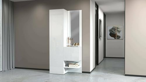 Dmora - Meuble d'entrée Vinicio, Armoire multifonctionnelle avec 2 Portes, Armoire Polyvalente avec Miroir, 90x35h190 cm, Blanc