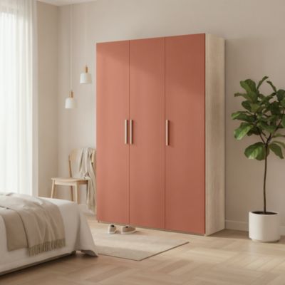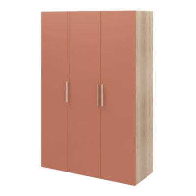 Armoire penderie 3 portes battantes terracotta et effet chêne GoodHome Atomia H. 225 x L. 150 x P. 45 cm