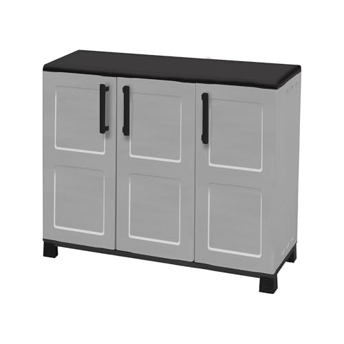 Dmora - Armoire d'extérieur Pelt, Armoire de balcon polyvalente, Armoire d'extérieur 3 portes, 100% Made in Italy, 102x37h90 cm, Gris clair et noir, Finition à carreaux