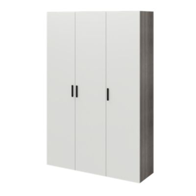 Armoire penderie 3 portes battantes gris clair et blanc GoodHome Atomia H. 225 x L. 150 x P. 58 cm