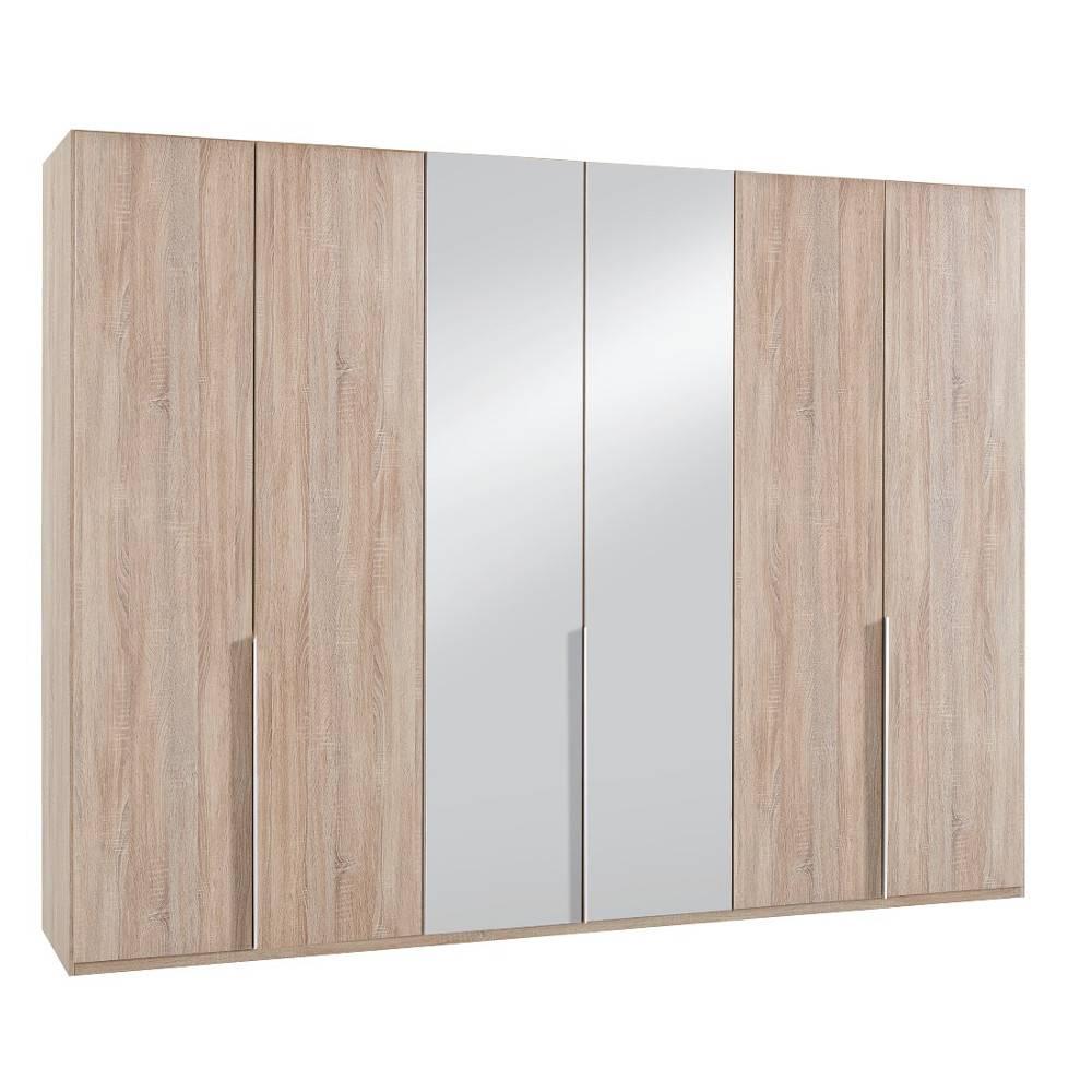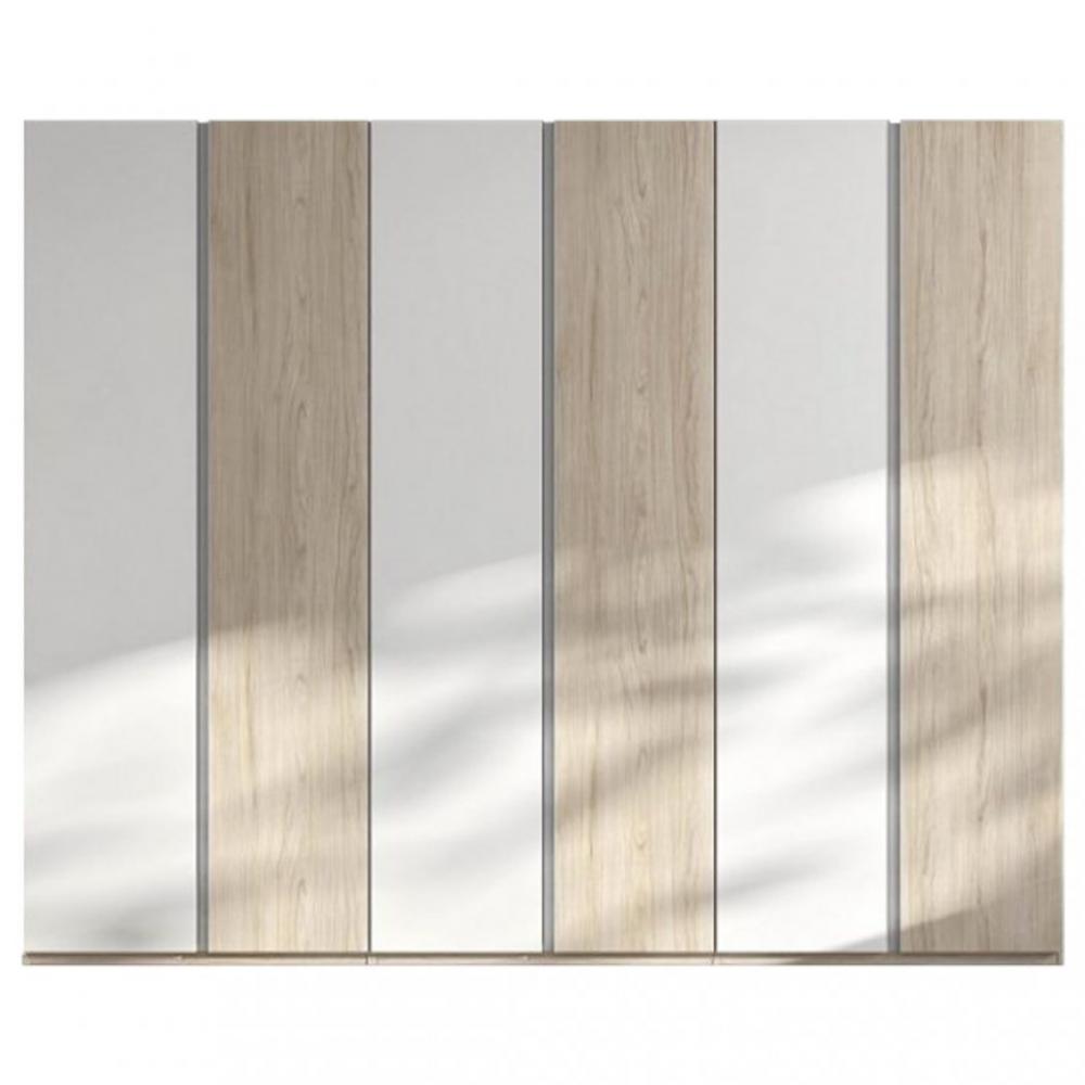 Armoire 6 portes 2 miroirs WILMA 270 cm chêne naturel