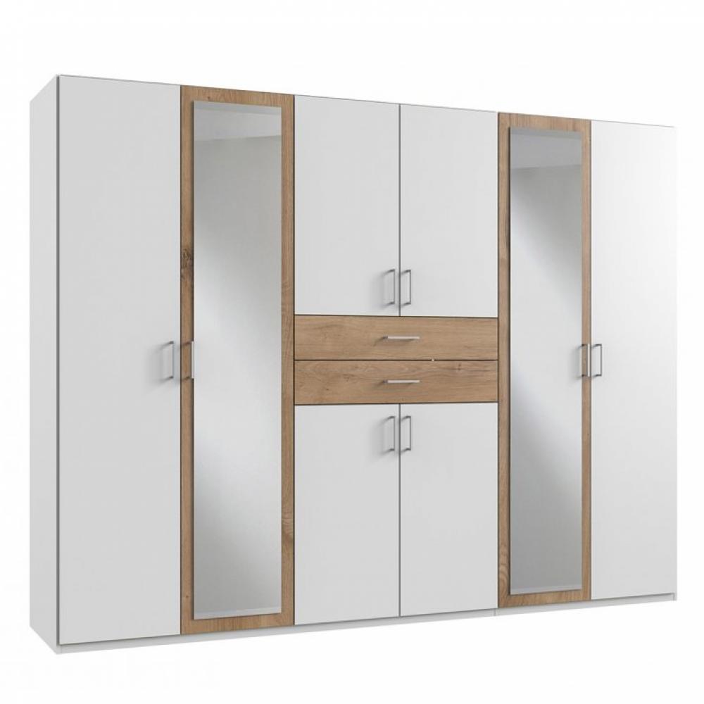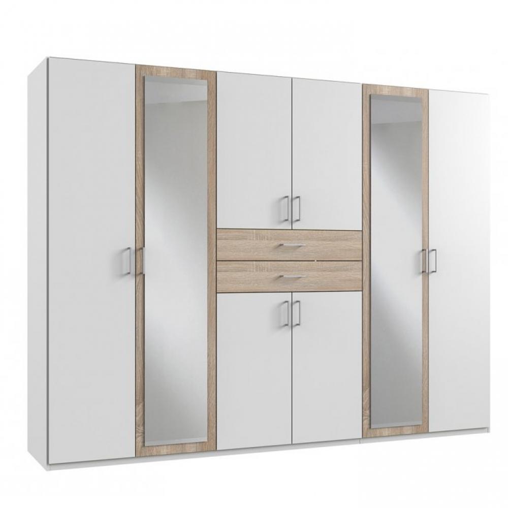 Armoire 6 portes blancs 2 portes miroirs DIVER 270 cm 2 tiroirs chênes