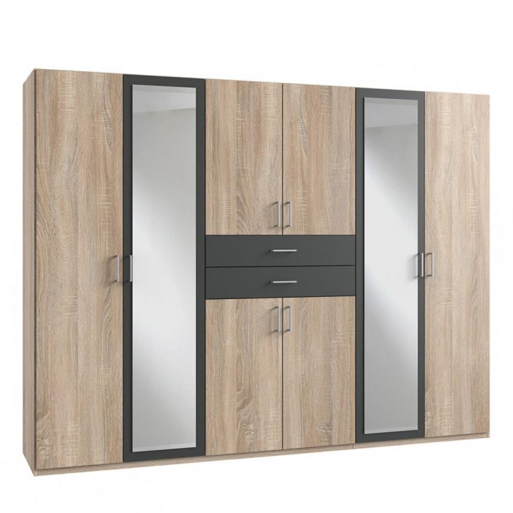 Armoire 6 portes chênes 2 portes miroirs DIVER 270 cm 2 tiroirs graphites