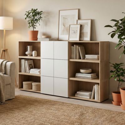 Armoire blanc 6 portes BLEND 2 portes aspect clayettes imit. chêne artisan