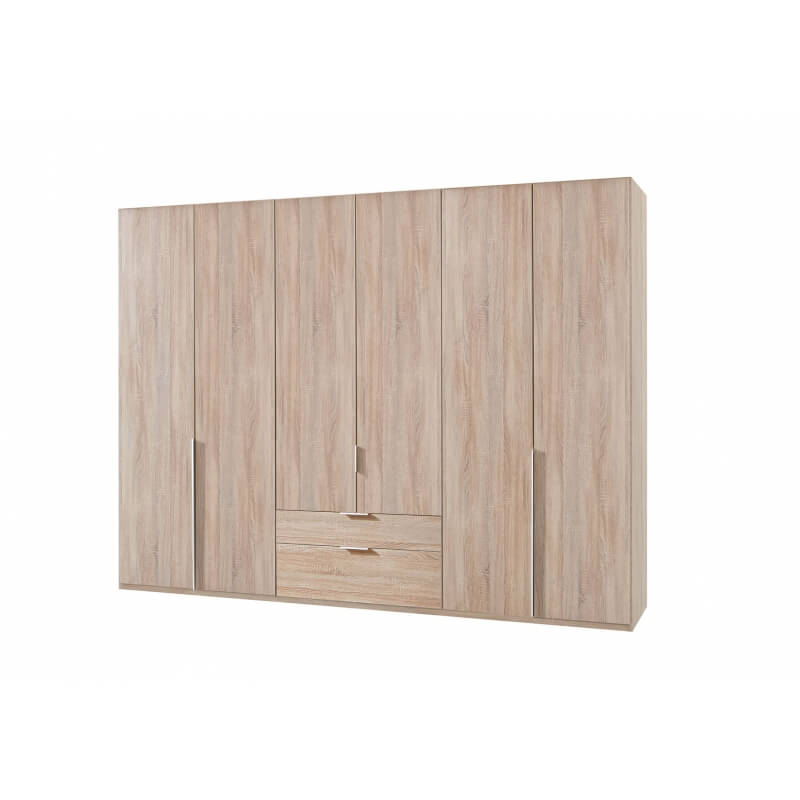 Armoire 6 portes 2 tiroirs WILMA 270 cm chêne naturel