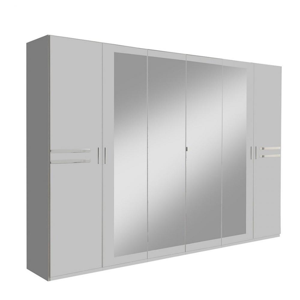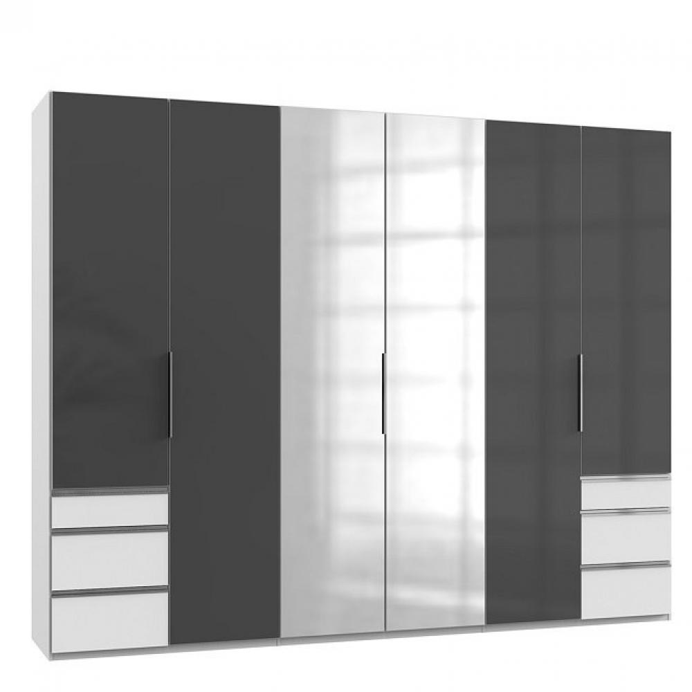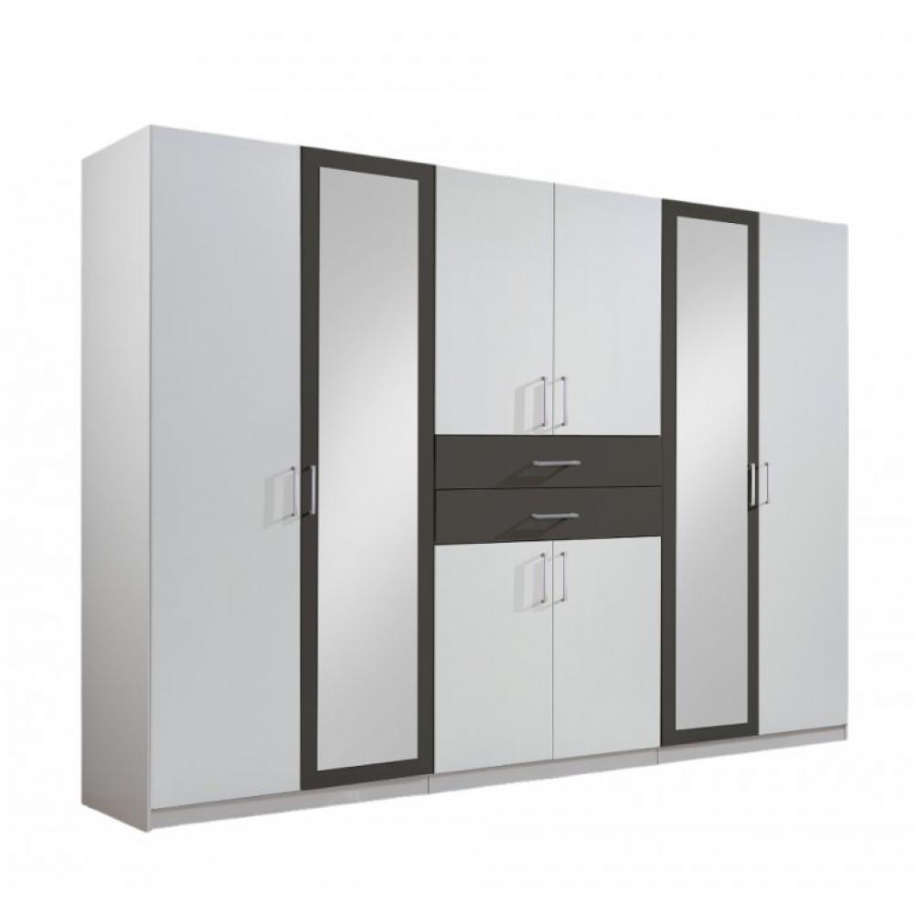 Armoire 6 portes blancs 2 portes miroirs DIVER 270 cm 2 tiroirs graphites