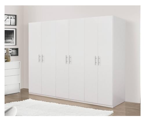 Dmora - Armoire à 6 Portes battantes, Blanc Mat, avec Tringle à vêtements, Dimensions 270 x 202 x 53 cm