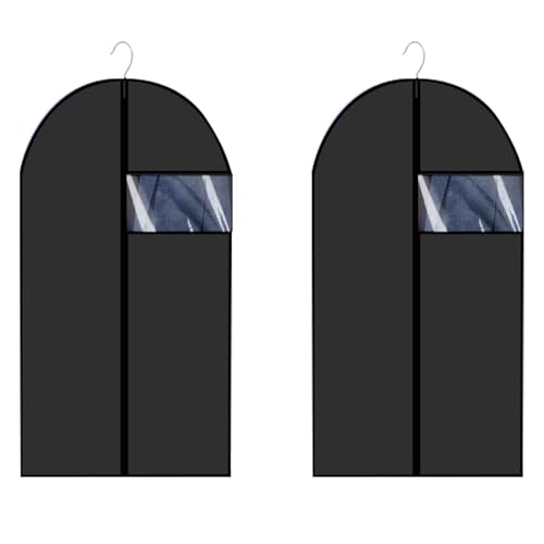 2 Pièces Housse Vetement, 60x100cm Housse Costume Noire Anti-Poussière, Housse Vetement à Suspendre avec Fenêtre, Imperméable Housse de Protection pour Vêtements Costume Chemise Manteau Veste Armoire