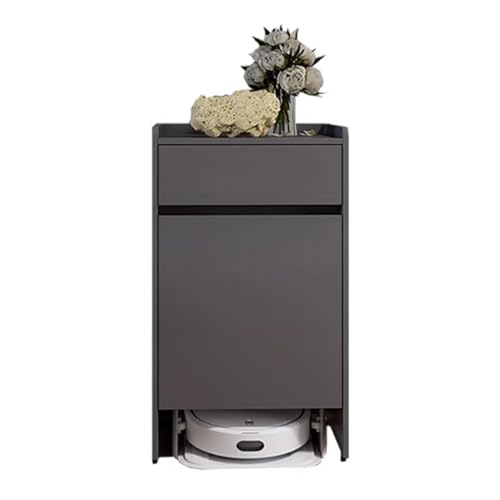 GUAWJRZDP Armoire de Rangement pour Balayeuse, Meuble de Rangement Dissimulé avec Portes Et Tiroirs, Aspirateur Robot Armoire avec roulettes, Meuble de Rangement Dissimulé pour Salon(Gray)