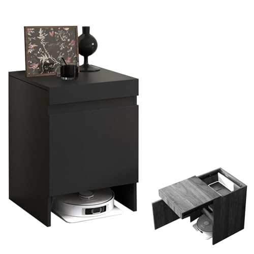 ZIGTUEI Meuble De Rangement Caché pour Aspirateur Robot, Armoire Cachée pour Robot Aspirateur avec Portes, Table D'Appoint en Bois, pour Salon, Chambre, Cuisine(Black)