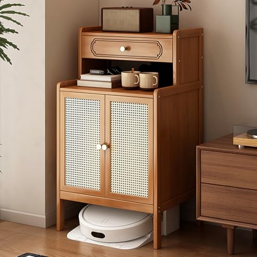 ZIGTUEI Meuble De Rangement Caché pour Aspirateur Robot, Armoire Cachée pour Robot Aspirateur avec Portes, Table D'Appoint en Bois, pour Salon, Chambre, Cuisine(Brown)