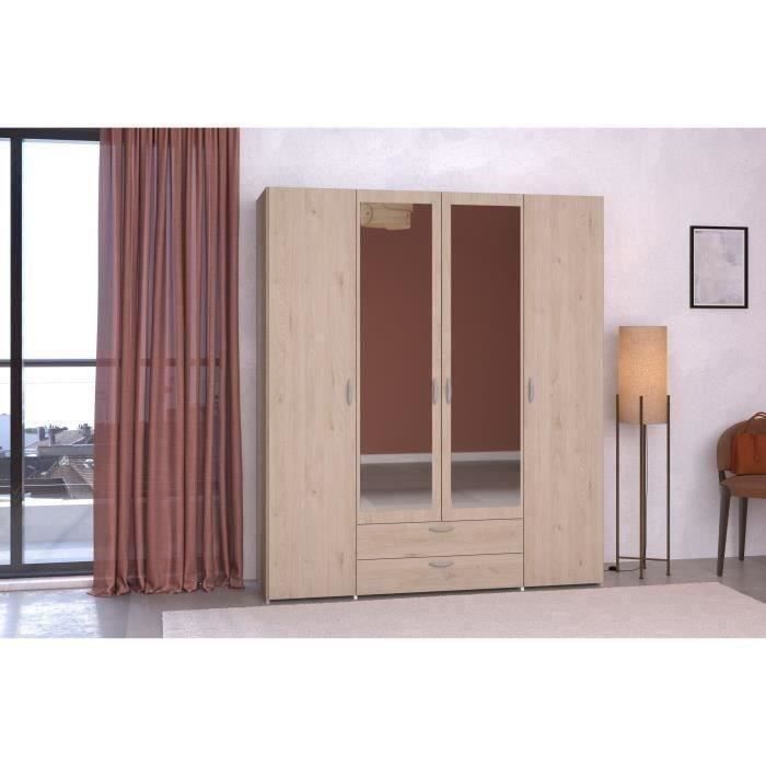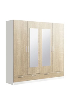 Mirror - meuble de chambre - armoire avec 8 portes-miroirs en mélaminé blanc. L-h-p : 148-191-34 cm.