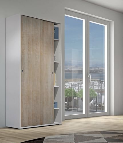 Dmora - Armoire Dalia, Armoire avec 2 Portes coulissantes et 4 étagères, mobilier de Chambre Polyvalent Moderne, 100% Made in Italy, 90x45h195 cm, Chêne et Blanc