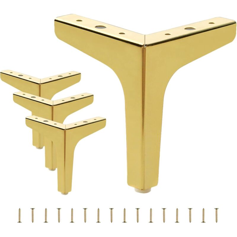 Pieds de Meubles Metal Doré, Pied Canapé de Rechange de 15cm Moderne, Pied pour Table Basse, Meuble TV, Armoire Salle de Bain avec Vis+Protection du