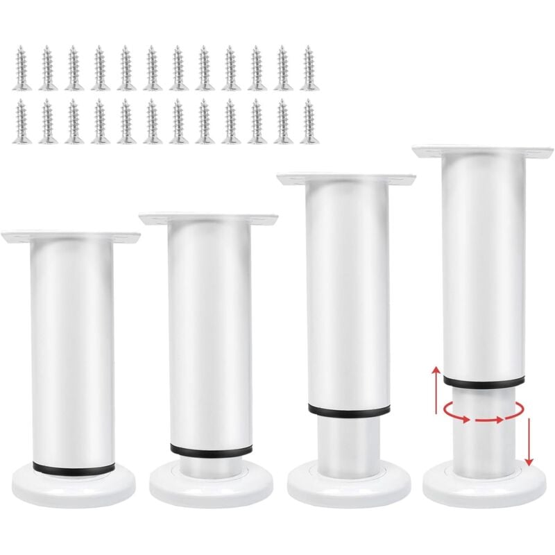 4 Pièces Pied Reglable pour Meuble Metallique Pieds de Table Basse Metal Blanc Pieds pour Meuble de Salle de Bain Pieds de Meuble,Lit,Armoire,18-30cm