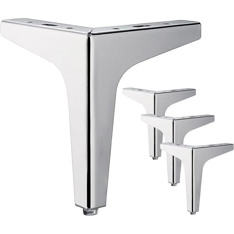 Lot de 4 pieds de meubles en métal argenté de 15 cm, pieds de table triangle diy, convient pour armoire, canapé, table basse, meuble tv et autres