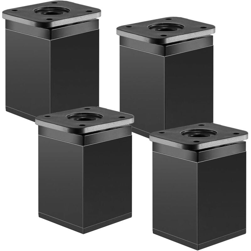 Lot de 4 pieds de meubles réglables en hauteur - En métal noir - Pour armoire, canapé, chaise, table, table basse, meuble tv, table de chevet