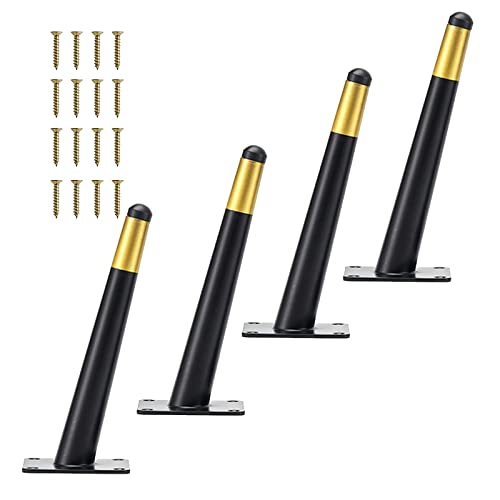 Lot de 4 Pieds de Meubles, Pieds de Table obliques, Pieds de Meubles en métal Modernes, Pieds de Rechange pour canapé, Armoire, Table à Manger, Table Basse, Bureau, Noir/doré, avec vis et pi