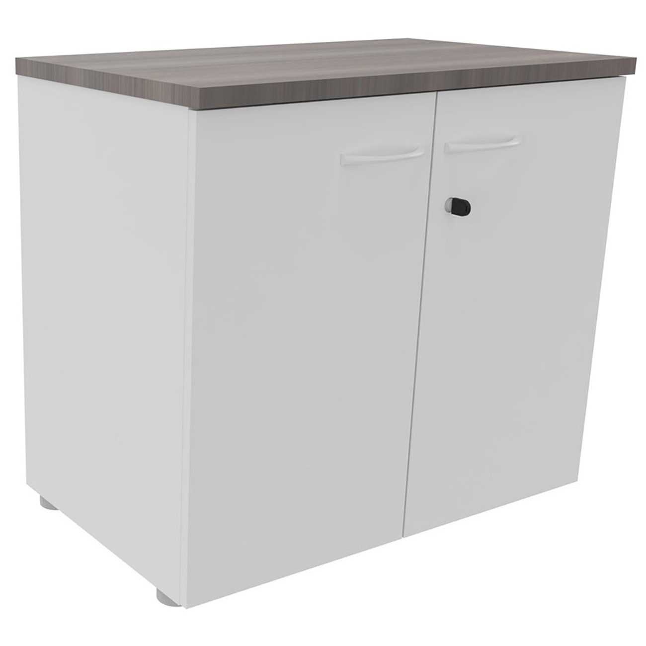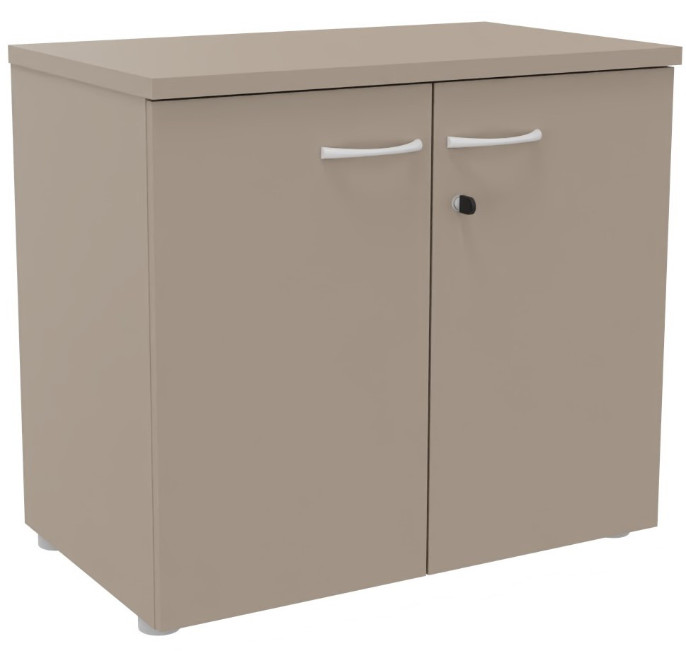 Armoire basse portes battantes L.80 x P.48 x H.72 cm - Corps Blanc - Top Argile