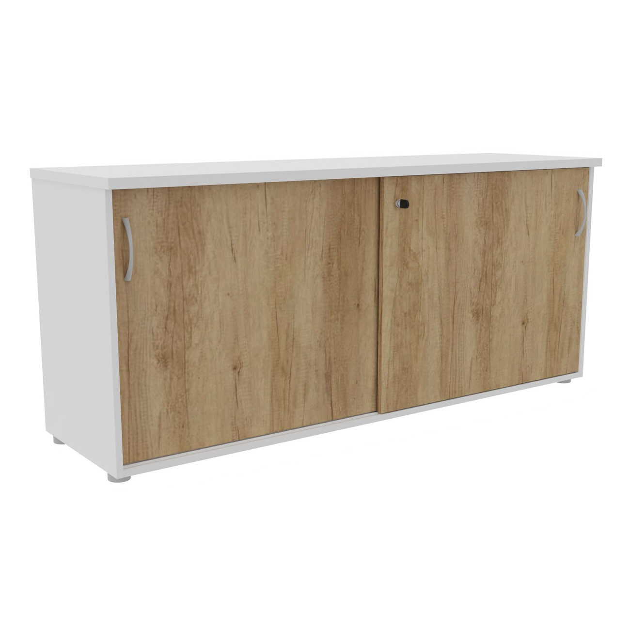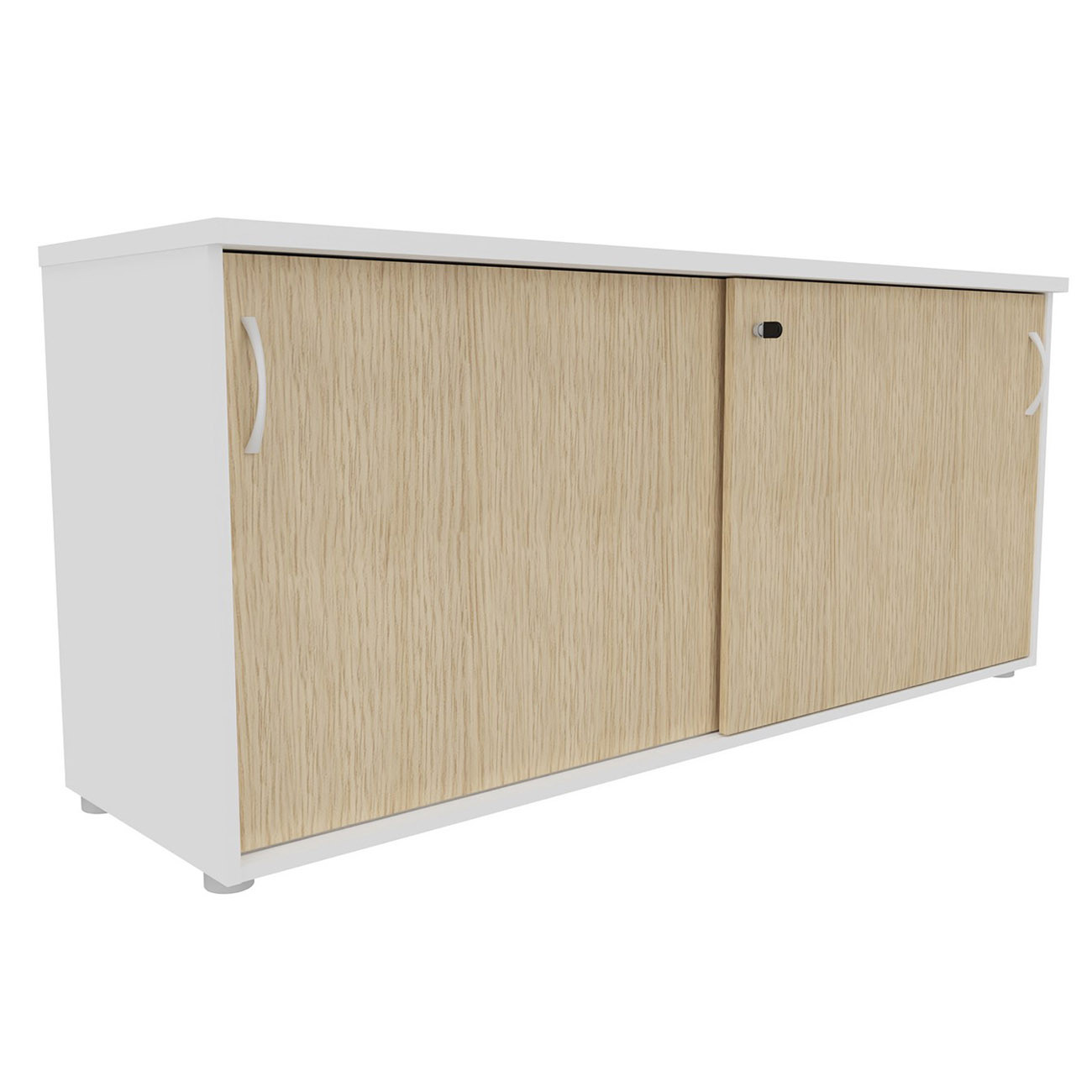Armoire basse portes coulissantes L.163 x P.48 x H.72 cm - Corps Blanc - Portes coulissante Chêne