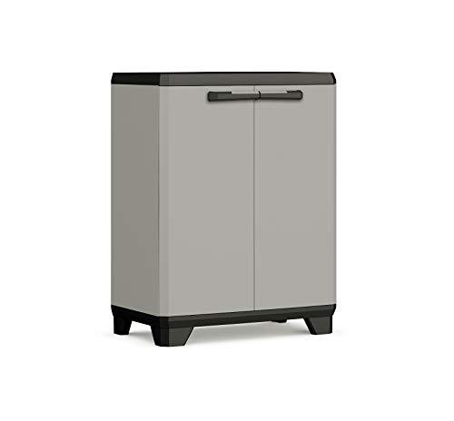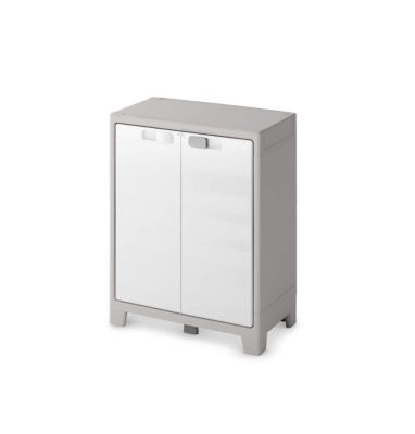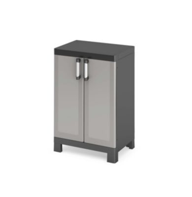 Armoire de rangement basse en résine TOOD - 1 tablette - 2 portes - Gris