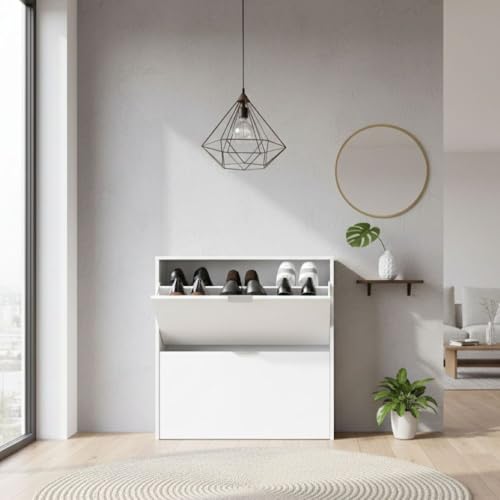 Dmora - Étagère à chaussures Louisville, Armoire à chaussures avec 2 portes pliantes, Étagère à chaussures d'entrée basse, Armoire basse, 75x22h76 cm, Blanc