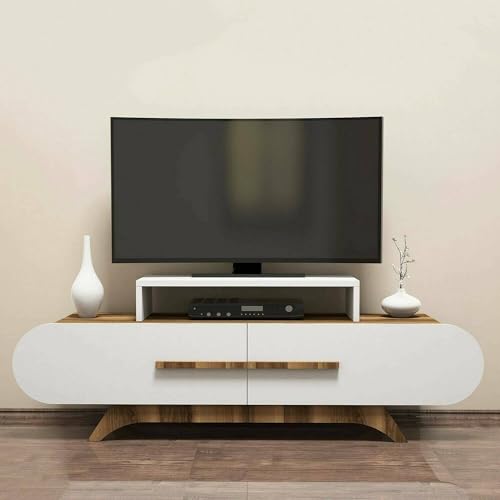 Dmora Meuble Diph, Buffet de Salon, Armoire Basse pour TV, Base Murale équipée, 160 x 35 h56 cm, Noyer et Blanc