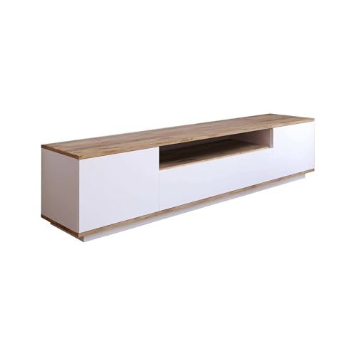 Dmora - Meuble TV Sinope, Buffet de Salon, Armoire Basse pour TV, Base Murale de Rangement, 180x45h45 cm, Chêne et Blanc