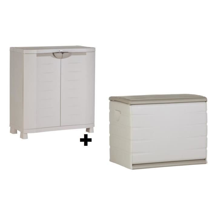 PLASTIKEN Coffre en résine 260L vide et armoire basse de rangement