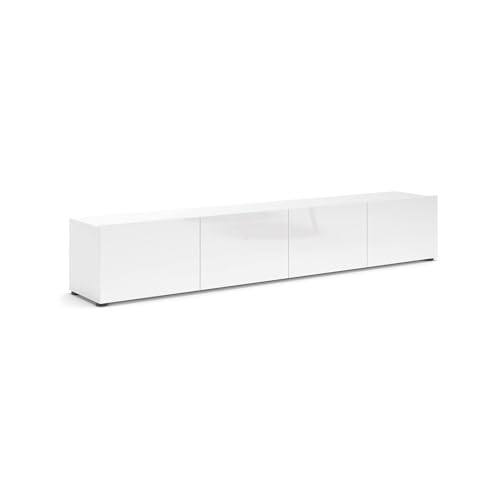 Dmora - Meuble TV Randfontein, Buffet de Salon, Armoire Basse pour TV, Base Murale de Rangement, Made in Italy, 225x38h39 cm, Blanc Brillant