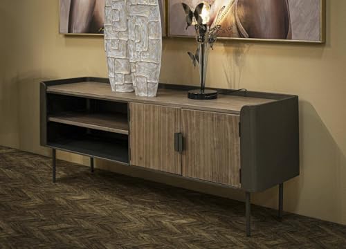 Dmora - Meuble TV Berlingo, Buffet de Salon, Armoire Basse pour TV, Base Murale de Rangement, 150x42 h58 cm, Gris et Marron