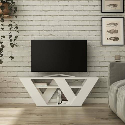 Dmora - Meuble TV Pegasus, Buffet de Salon, Armoire Basse pour TV, Base Murale de Rangement, 110x30h40 cm, Blanc